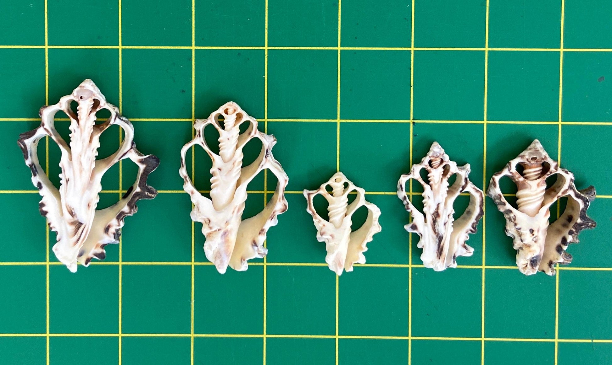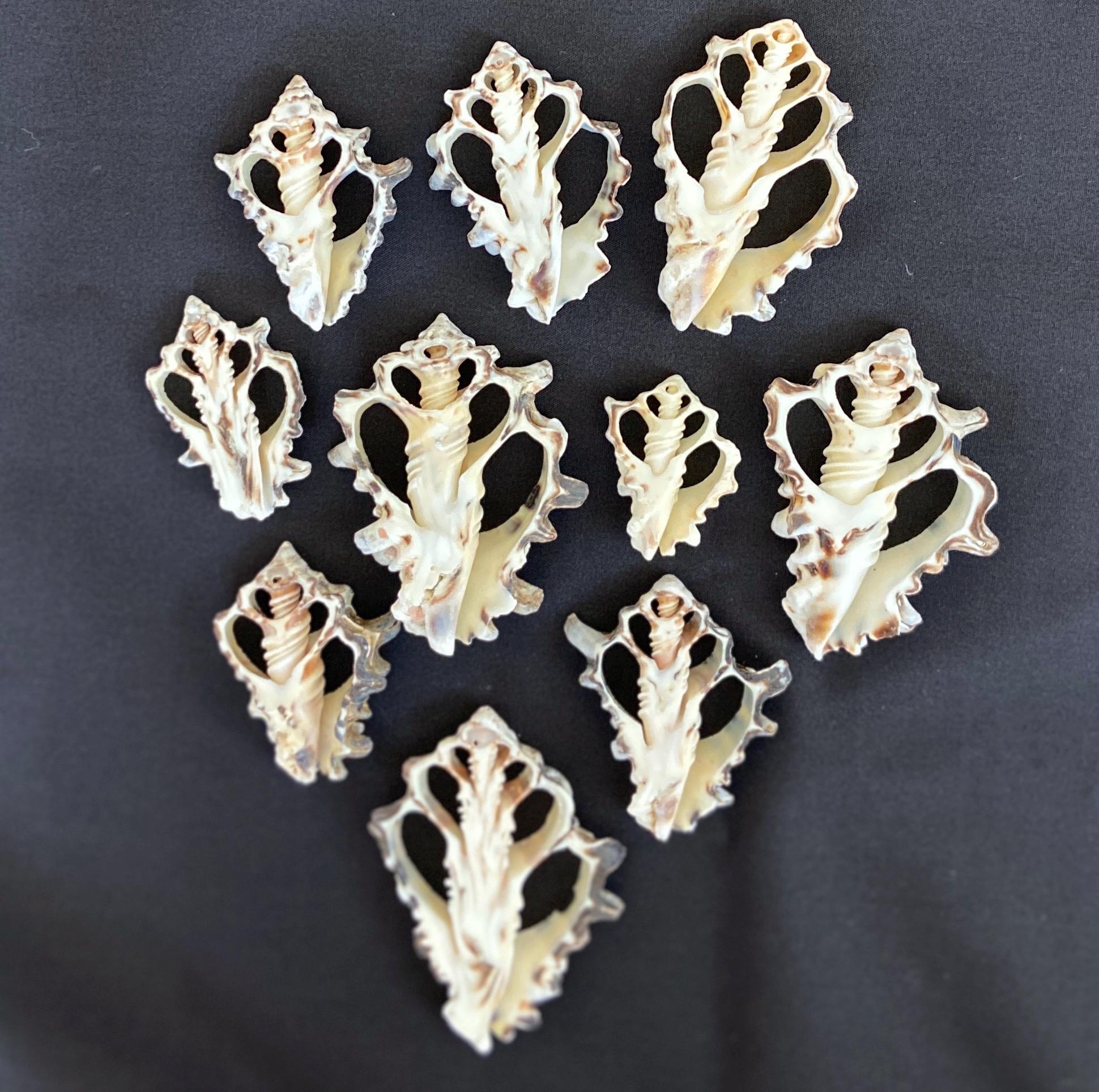 Each pack will have a range of sizes measuring approximately 1.25 inch to 3 inches Easy to hand sew or hot glue Features a naturally striated exterior texture with the signature spiny zebra striping of Vassum Turbinella Shells, and a smooth, bright white interior which stands out over lauhala, tapa cloth, natural matting, and any color fabric