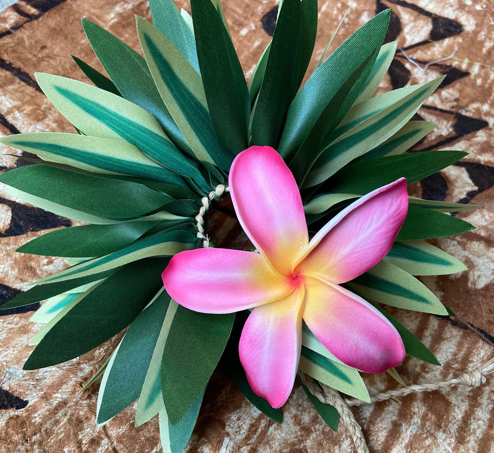 Silk Ti Leaf and Variegated Greenery Na Kupe'e for Wrists and Ankles with Premium Foam Frangipani Blooms Doubles as a Hair Bun Wrap