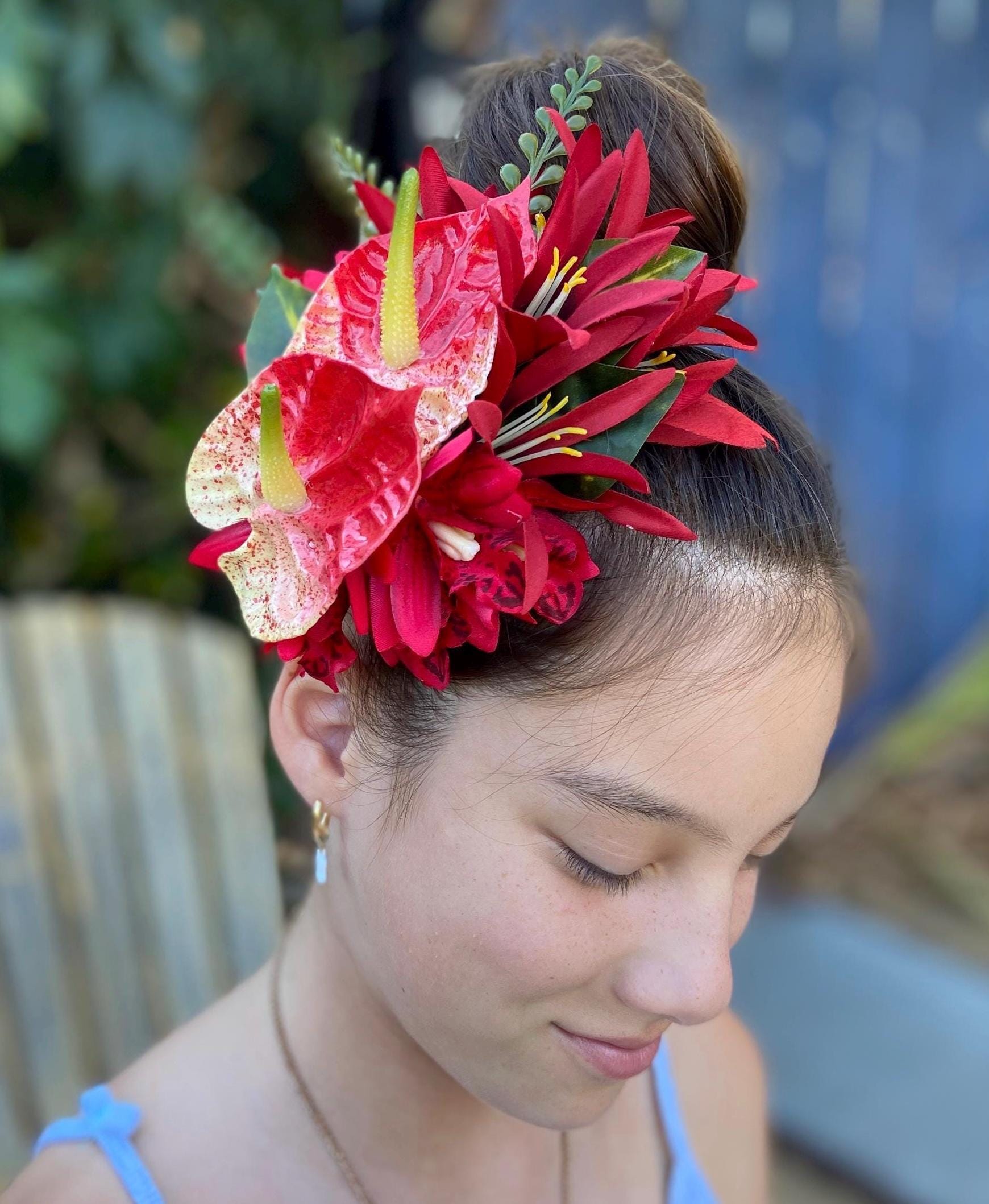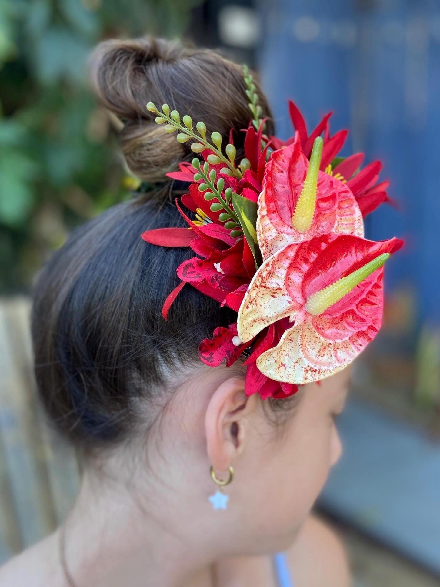 Hawaiian Anthurium Fern Orchid Tropical Wedding Graduation Hair Clip Tahitian Statement Piece Bridal Honeymoon Engagement Beach Photoshoot