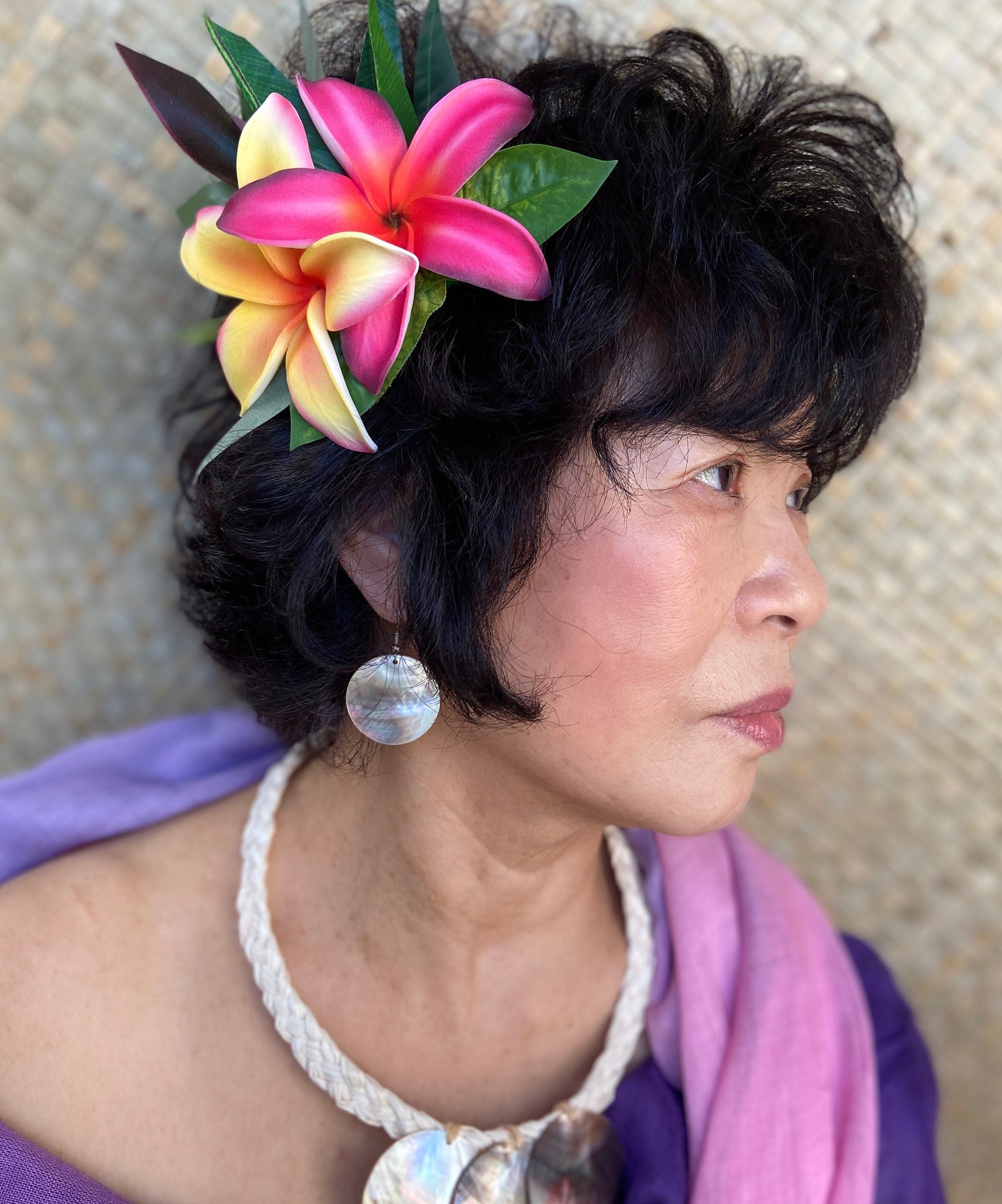 Hawaiian Hair Clip Tahitian Adornment Aparima Ahuroa Statement Piece Sunrise Sunset Twin Plumeria Vintage Tropical Elegant Hair Pin