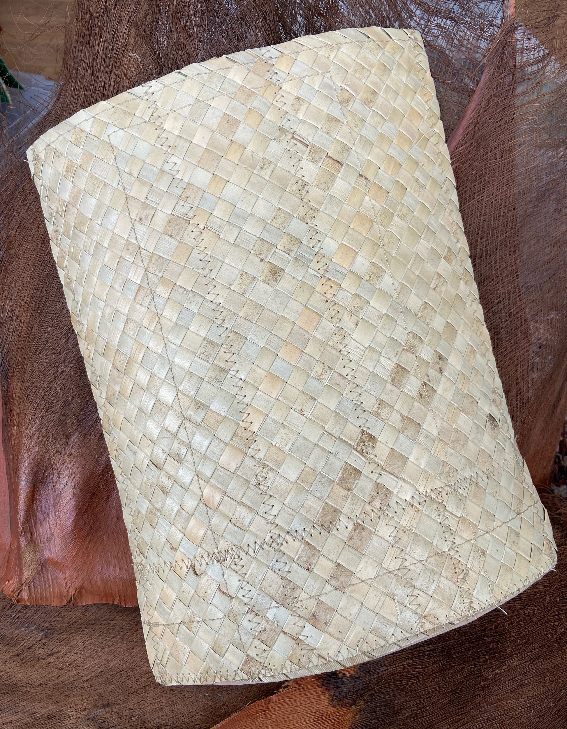 *** Structural cross-bracing and stitch lines will be added as necessary to support natural weight-bearing of woven lauhala; every piece will be uniquely stitched with the most appropriate foundation lines to create the sturdiest base plate by size