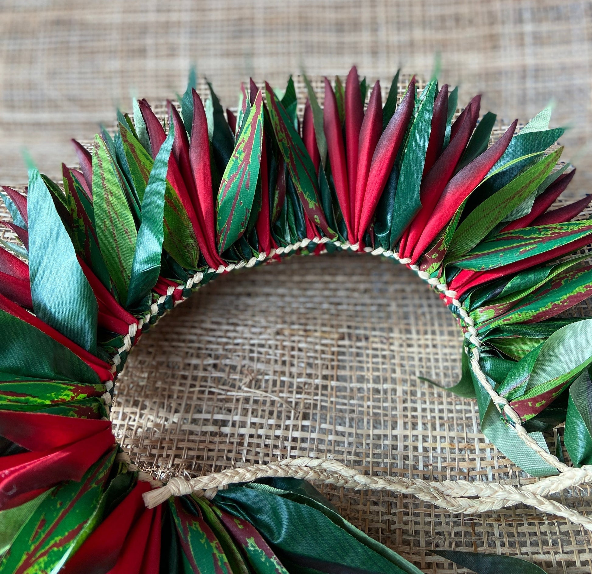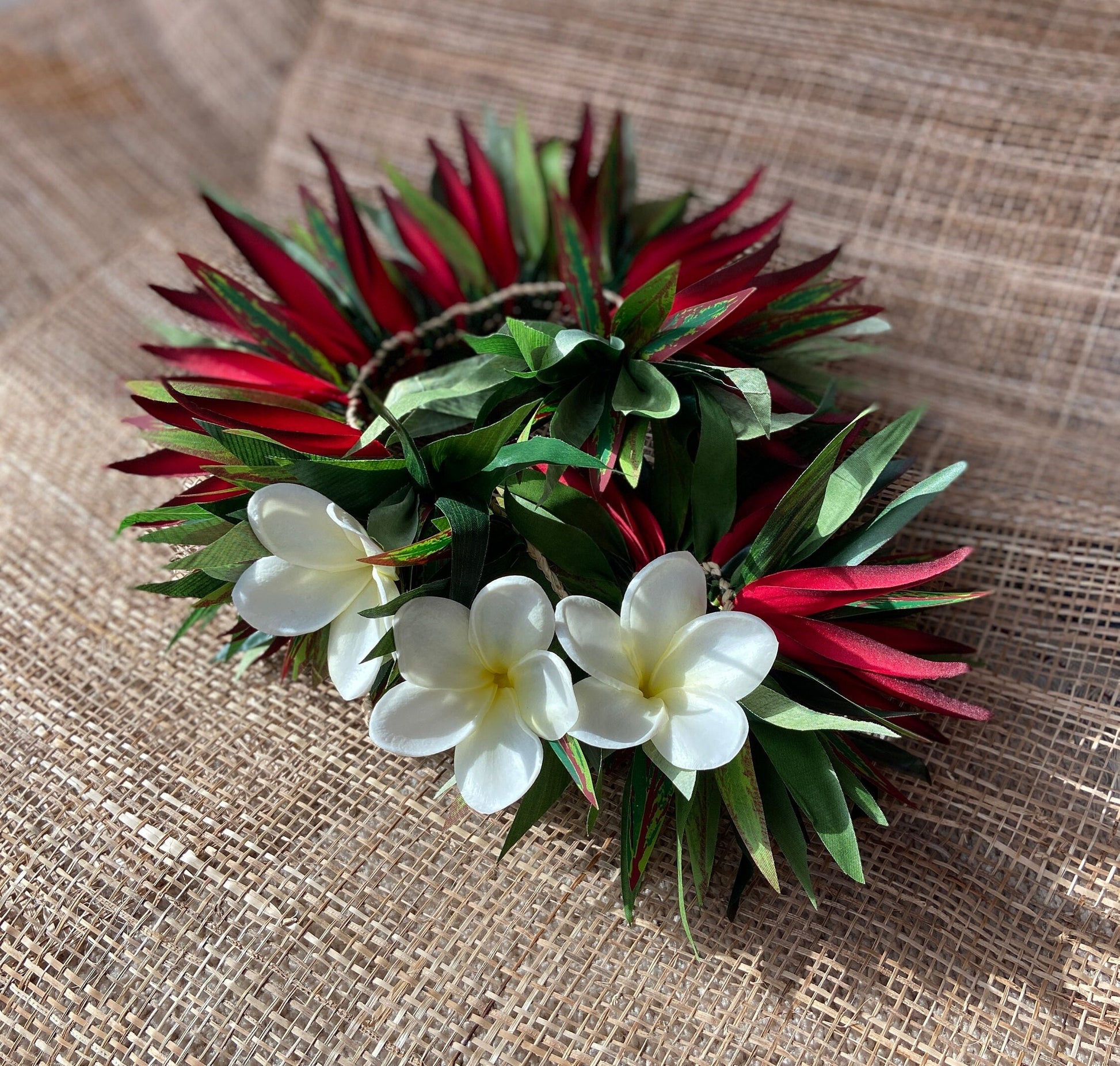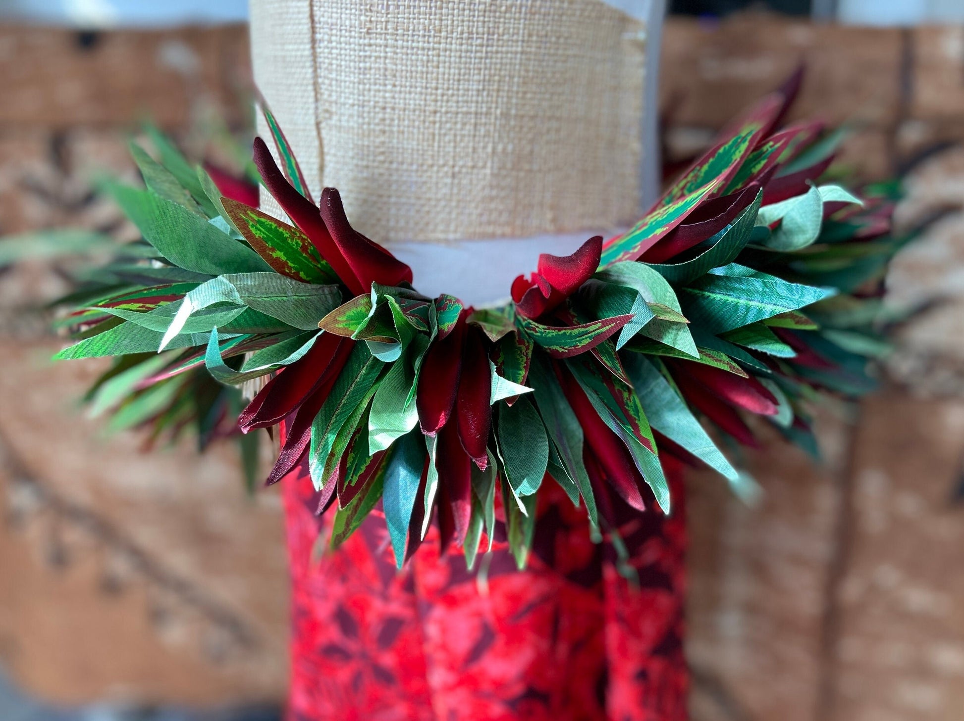 Stunning Silk Floral Ti Leaf and Variegated Greenery Hip Hei for Aparima, Ahuroa, Bridal, and Solo Polynesian Dance