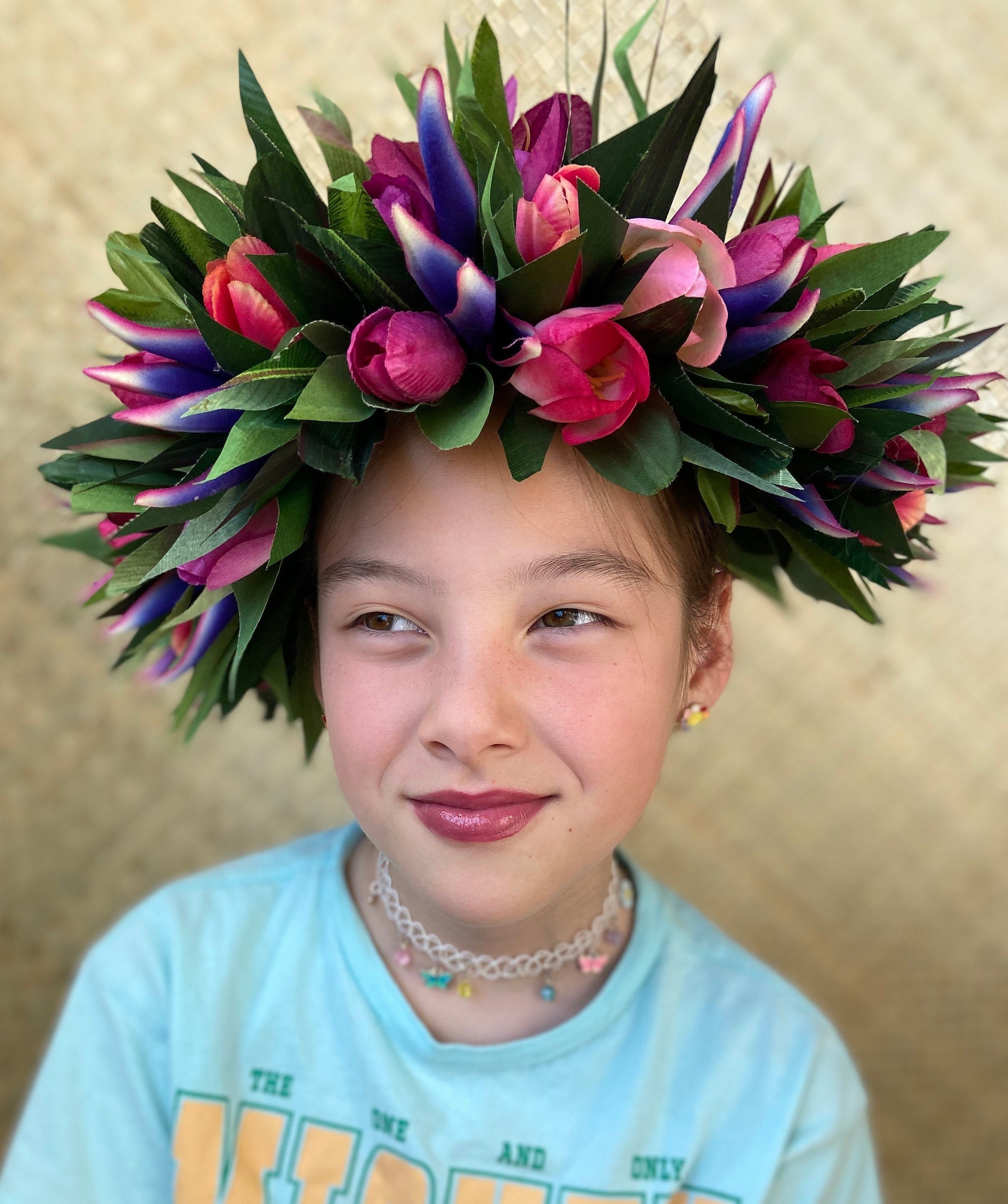Lei Po'o foundations are plaited in-studio with the highest quality materials to ensure maximum comfort and flexibility for a perfect fit around your head.