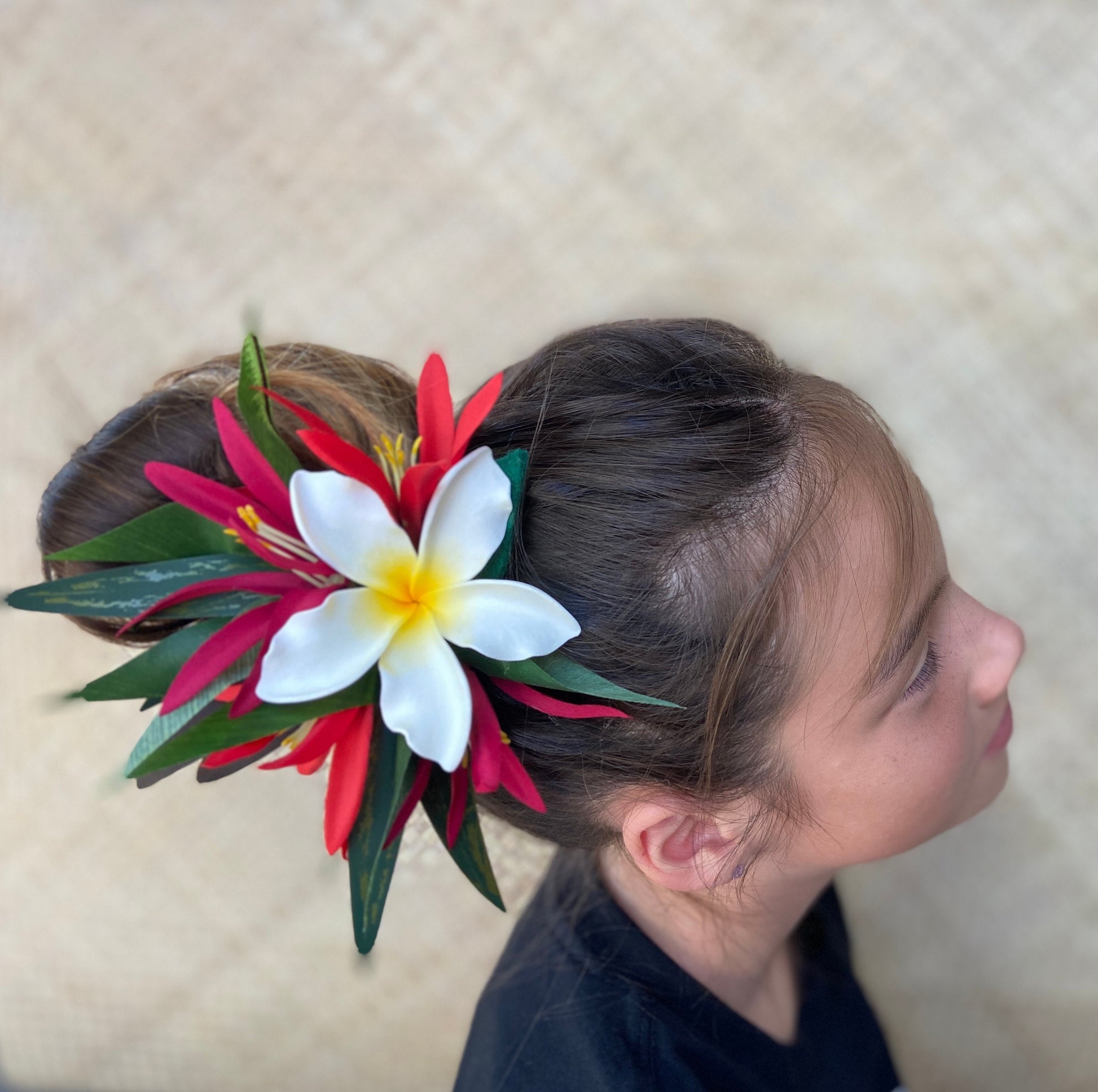 Royal Hawaiian Plumeria Hair Clip Tahitian Headdress Costume Aparima Ahuroa Statement Piece Spider Lily Floral Artificial Ti Leaf Hairpin