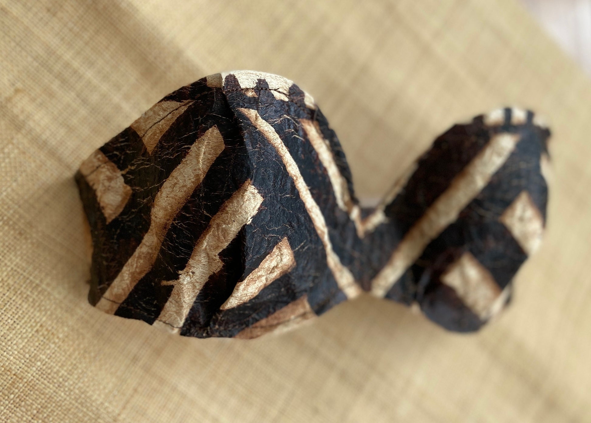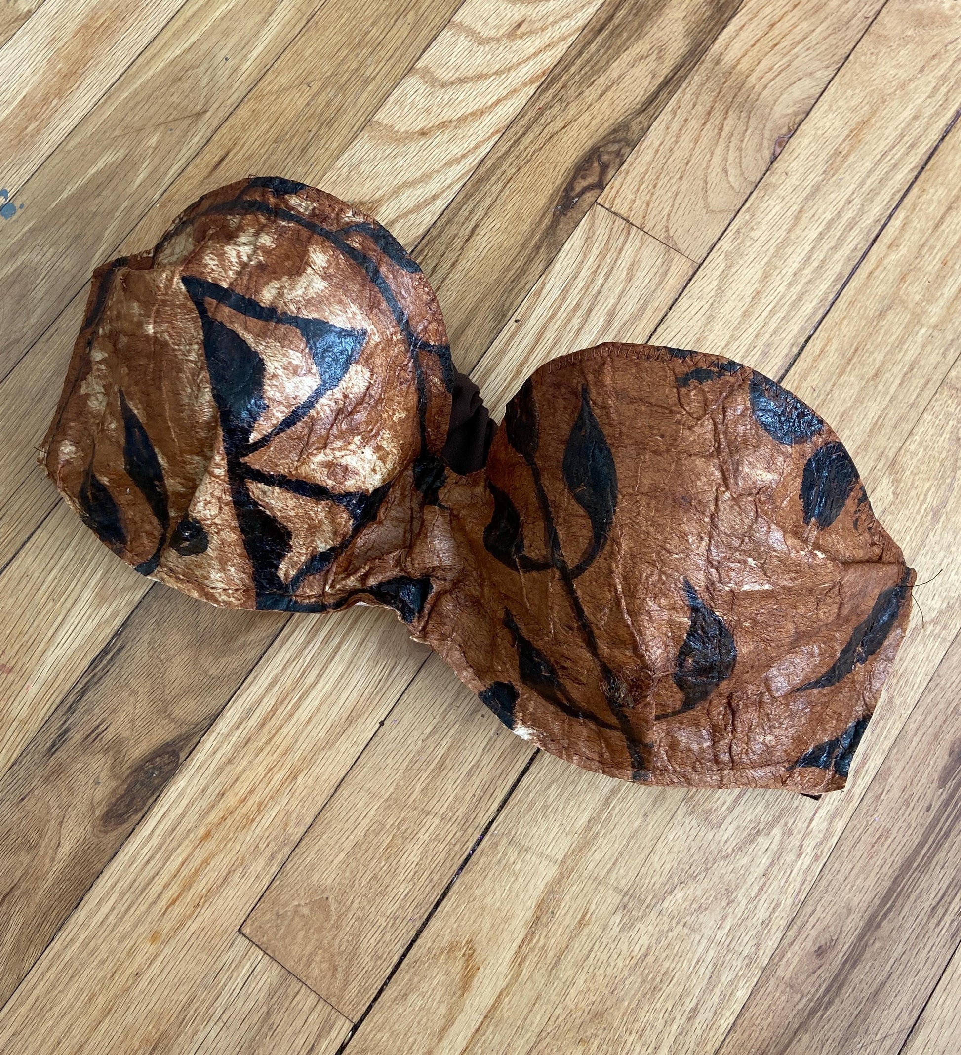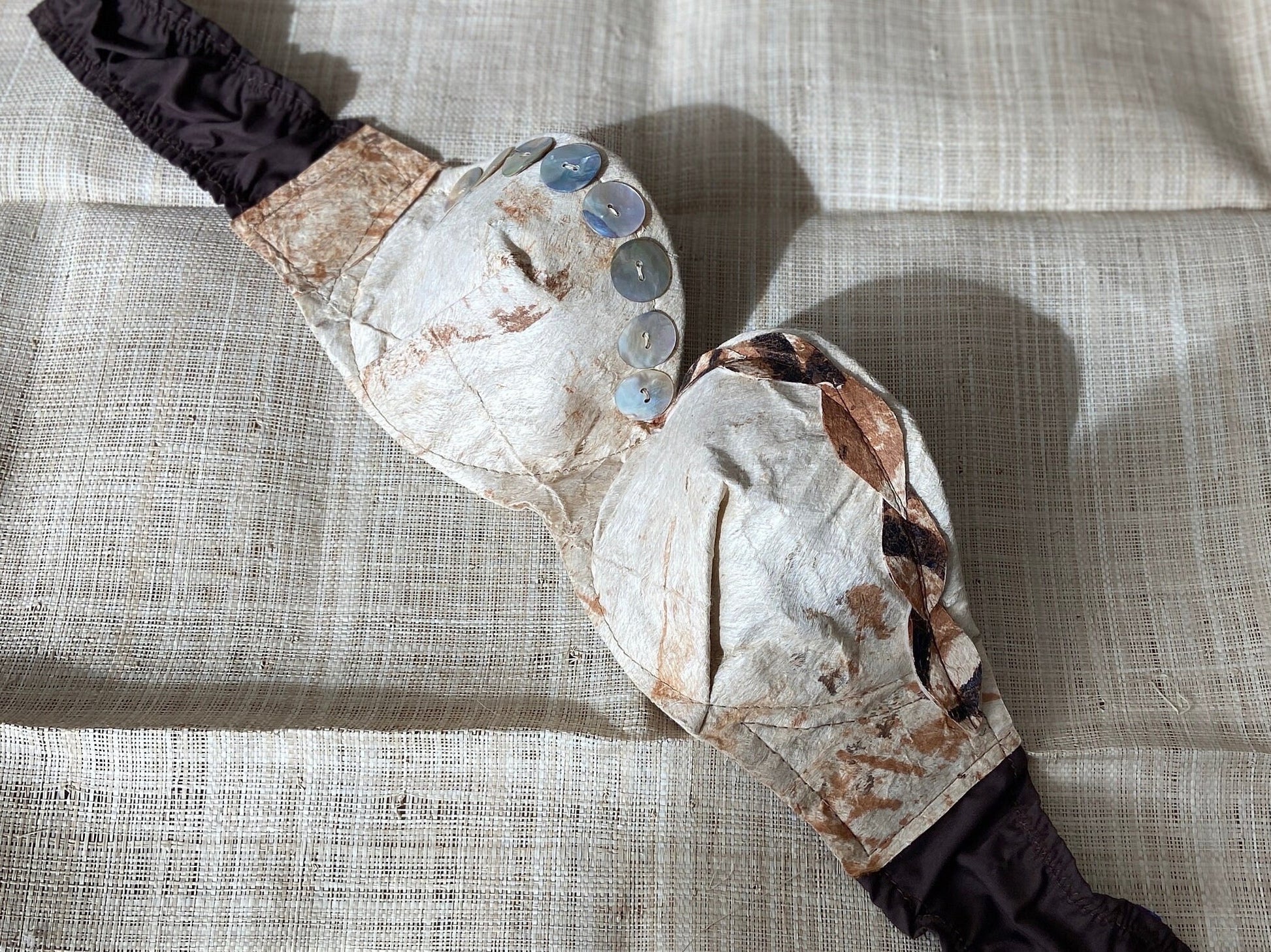 Foundation bra cups will be fully tailored in traditional tapa cloth on a Tahitian French Bandeau silhouette with contoured center and edge wings.