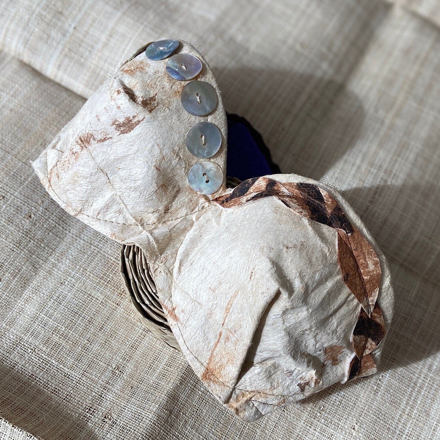 This listing is for a tailored bra top with Tapa Cloth only, extra embellishments such as feather, seashells, pearls, etc. are available with an additional customization fee.