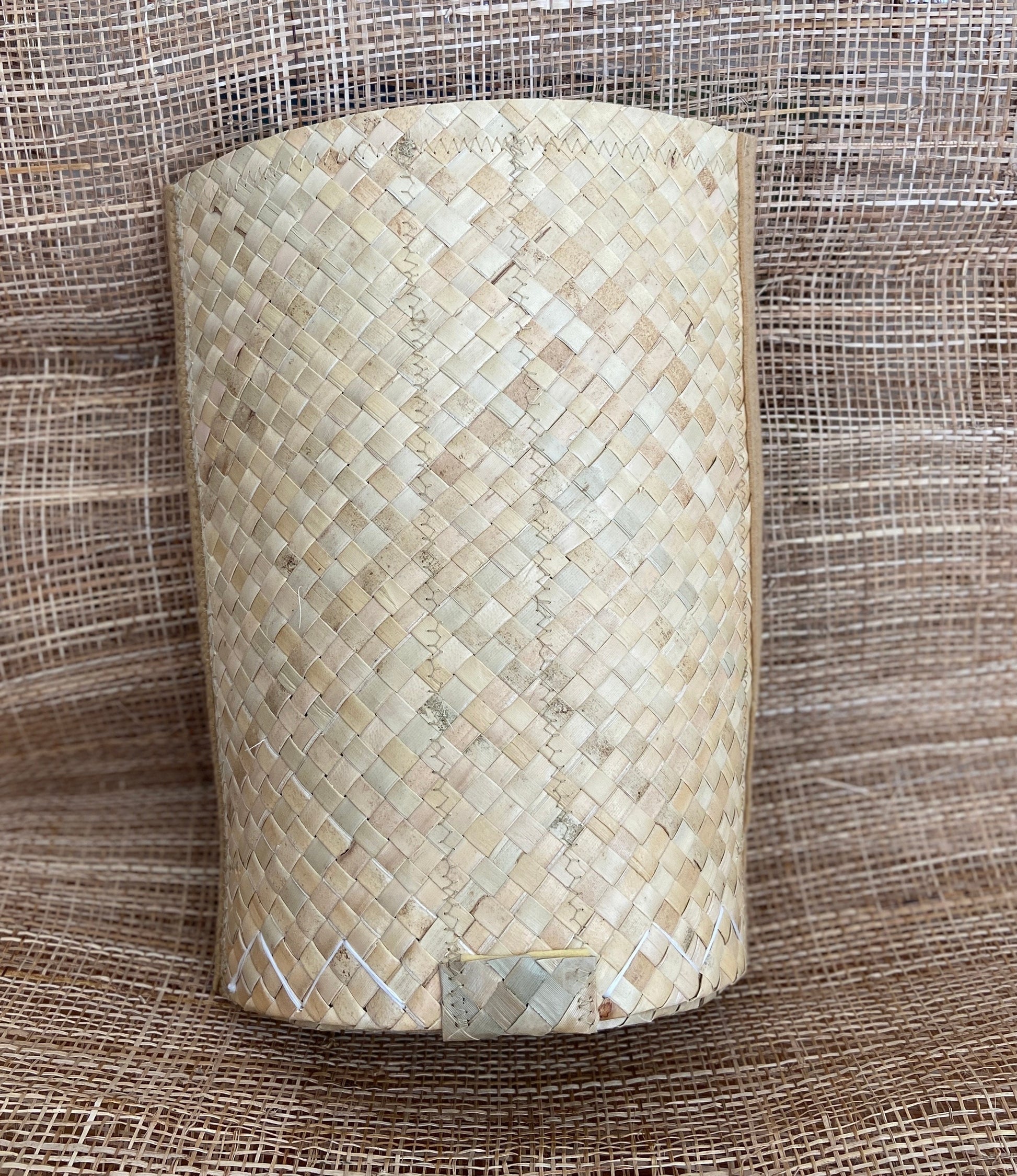 Rectangle/Tall Headdress has 14” height of embellishable woven lauhala plate